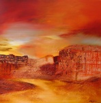 Boeiende expositie van olieverf schilderijen met reliëf op linnen.